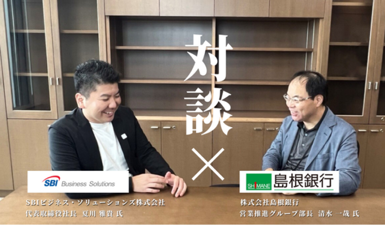 「請求QUICK」を提供するSBIビジネス・ソリューションズ株式会社 代表取締役社長 夏川雅貴氏と、そのユーザーである株式会社島根銀行の清水一哉氏に、サービスの概要や新機能、経理のデジタル化の重要性などについて話を聞いた。